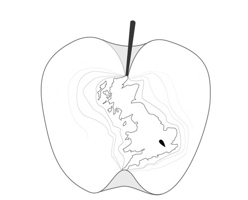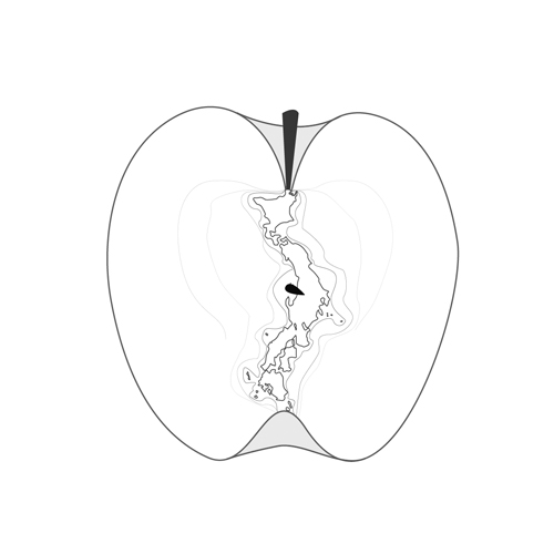 The apple’s identity, much like ours, is tightly linked to it’s origin. In this proposal I suggest giving respect to the origin of the traveling apple by making it visible to the revealing bite and the curious eye.