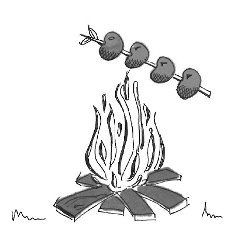 My vision is that the apple grows naturally already skewered on the tree branch. Eating a grilled apple around the campfire can be a joyful activity.