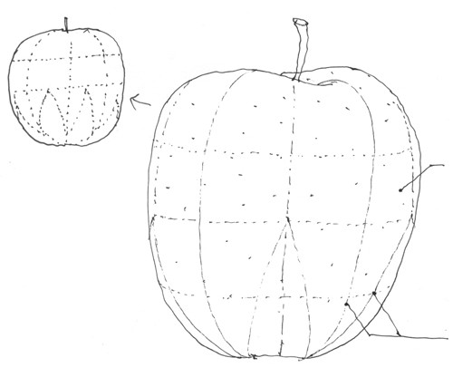 This apple has different cutting options. By following the cutting lines, you can cut the apple in three very elaborate shapes.