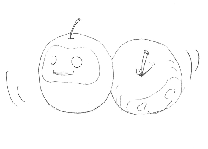 This apple is shaped like a Daruma doll. The forms of both, the apple and the Daruma doll are not just shapes, they represent a deep meaning and a profound connection to human being. I feel there is a similarity between the two.