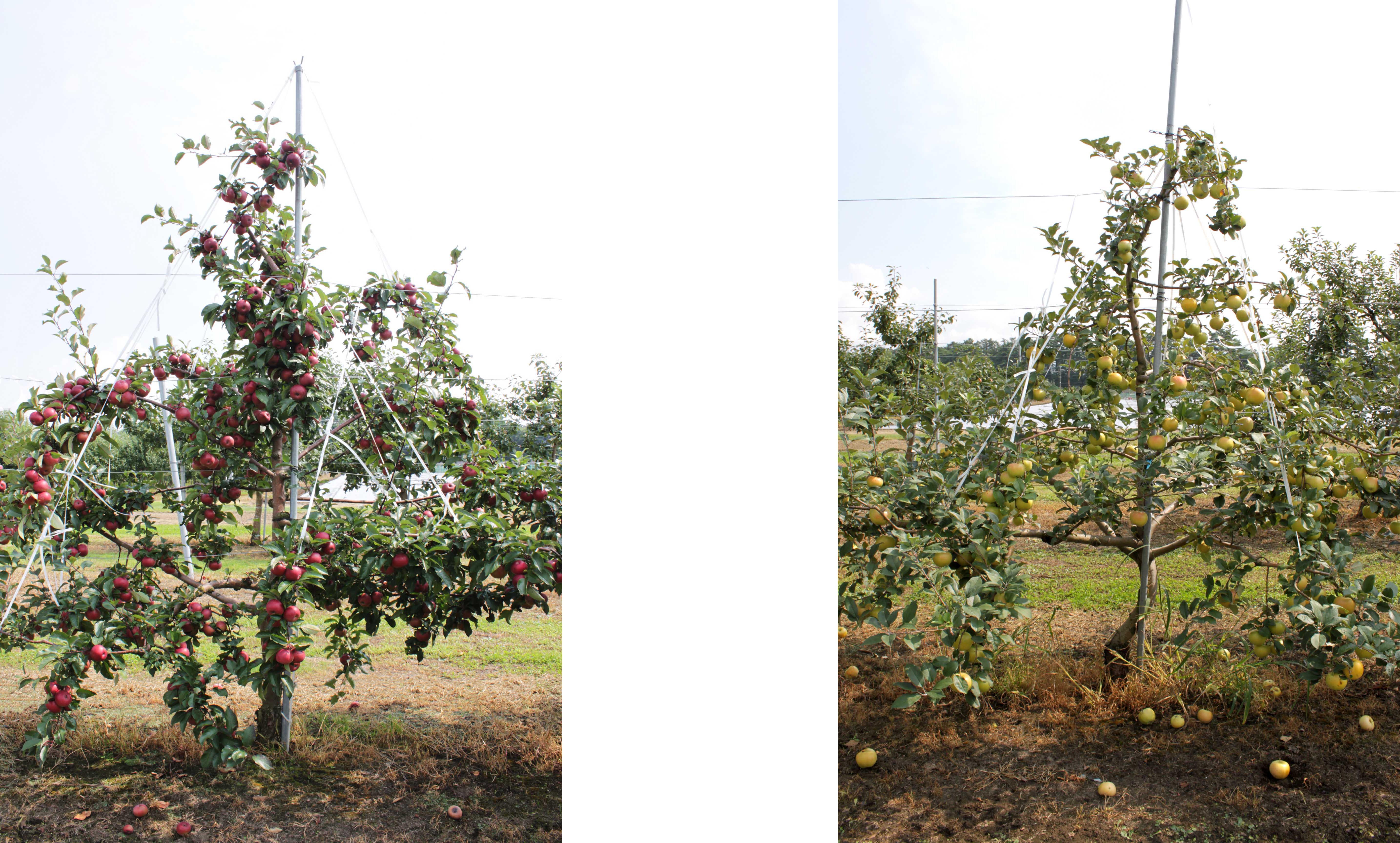 Apple trees grafted on invigorating rootstocks (29-year-old) in the Apple Research Station in NARO institute of Fruit Tree Science, Morioka, Iwate, Japan